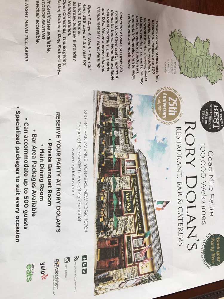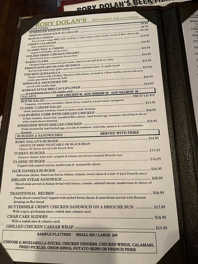 Customer reviews praise the warm ambiance and attentive service, with each visit promising a blend of delicious food and a lively atmosphere. Whether you're stopping by for lunch, dinner, or just a drink, Rory Dolan's invites you to savor every bite.