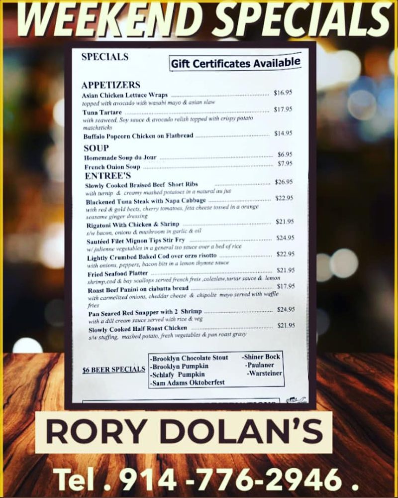 Welcome to Rory Dolan's Restaurant & Bar, where American comfort food meets a vibrant pub atmosphere in Yonkers. The menu is a delightful blend of hearty dishes designed for both casual dining and memorable gatherings.